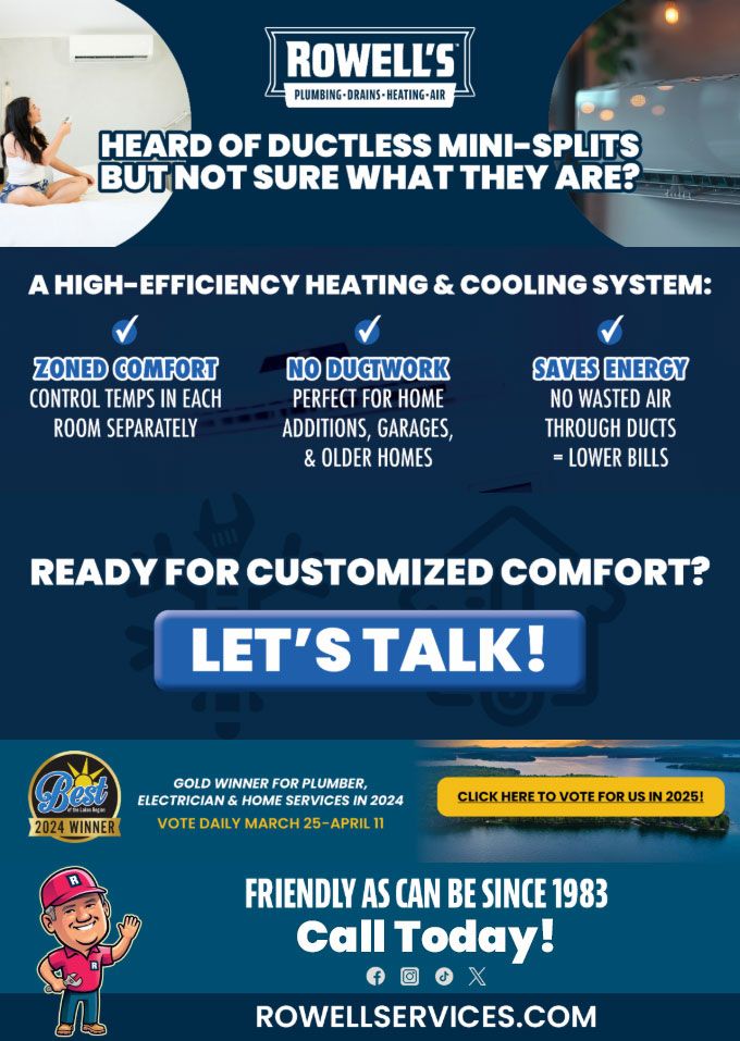 "Friendly As Can Be Since 1983!" When you need help with your plumbing, drains, heating, cooling or electrical in Weare, you can always rely on Rowell's Services! Call us now or book online!