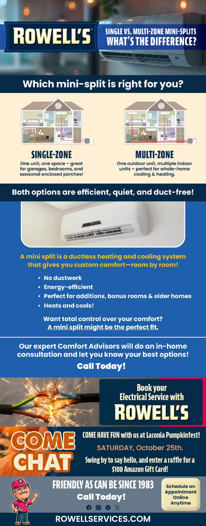 "Friendly As Can Be Since 1983!" When you need help with your plumbing, drains, heating, cooling or electrical in Weare, you can always rely on Rowell's Services! Call us now or book online!